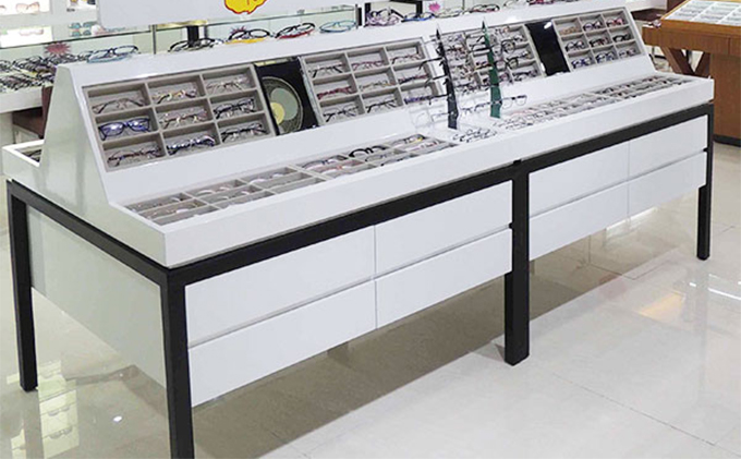 本款眼鏡中島柜,有一個特別的優點:方便眼鏡店員工每天的盤點工作,看一眼,就知道有沒有掉貨了,再也不用擔心眼鏡店眼鏡被盜。極大地減輕了眼鏡店員工的工作量,讓眼鏡店員工有更好的精力去接待每一個光臨眼鏡店的顧客。